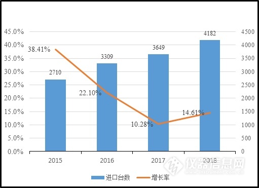 2015-2018年 質譜聯用儀進口量及增長趨勢