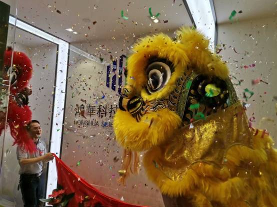 上午11時(shí)08分,在嘉賓們和公司全體同事的見(jiàn)證下,鴻華科技有限公司總經(jīng)理許高云先生和特約嘉賓共同為公司新辦公室形象墻揭牌,隨后舞獅隊(duì)開(kāi)始進(jìn)行辦公室內(nèi)慶典儀式。上午11時(shí)20分左右,喬遷慶典儀式接近尾聲,出席嘉賓自行參觀公司新辦公室各功能區(qū)域,并合影留念。