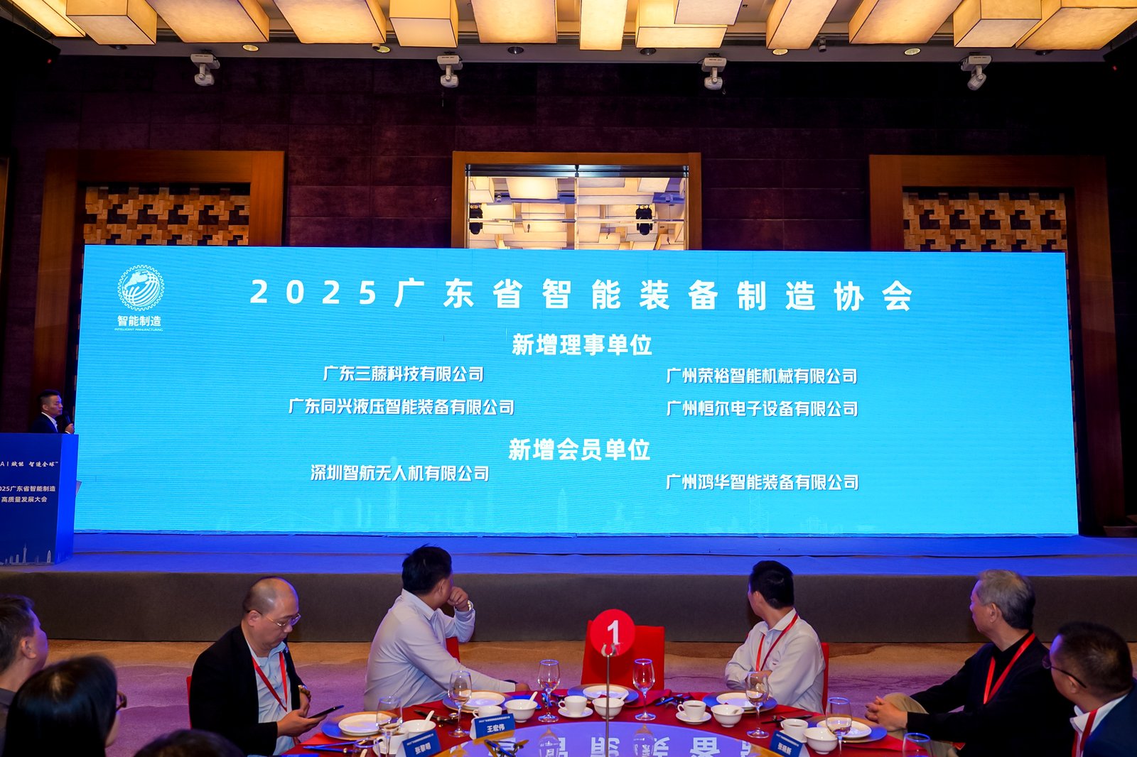 2025年3月25日,“AI賦能,智造全球”2025廣東省智能制造高質量發展大會在廣州隆重舉行,本次大會由廣東省智能裝備制造協會組織,協會旗下200多家會員企業的代表、智能裝備領域專家學者、金融服務企業的代表等參加會議。鴻華科技有限公司總經理許高云受邀參加本次大會,鴻華科技有限公司下屬廣州鴻華智能裝備有限公司通過大會表決被同意加入廣東省智能裝備制造協會,成為協會會員單位。